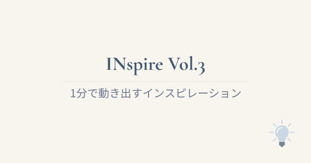 💡INspire Vol.3|1分で動き出すインスピレーション